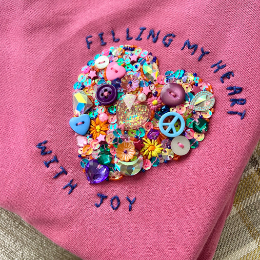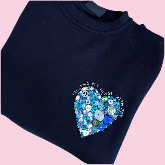 filling my heart with joy - hand-embellished sweatshirt - navy