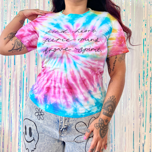 kind heart, fierce mind, brave spirit tie-dye t-shirt