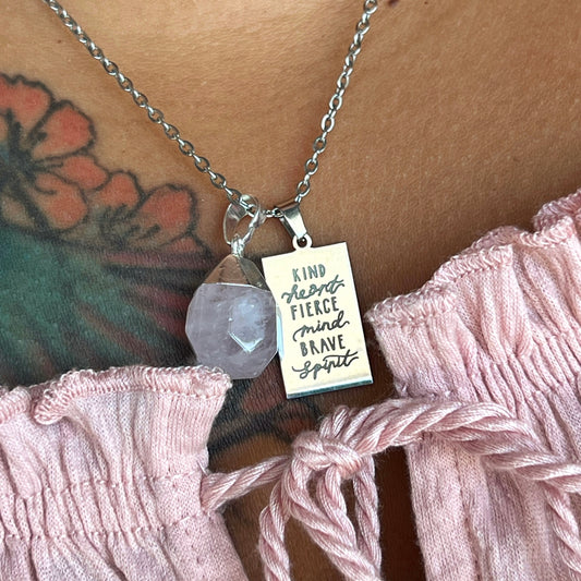 kind heart fierce mind brave spirit double-sided necklace - silver