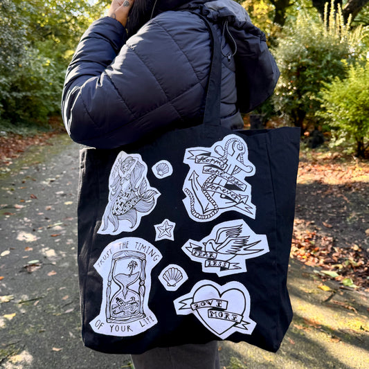 nautical tattoo flash tote bag