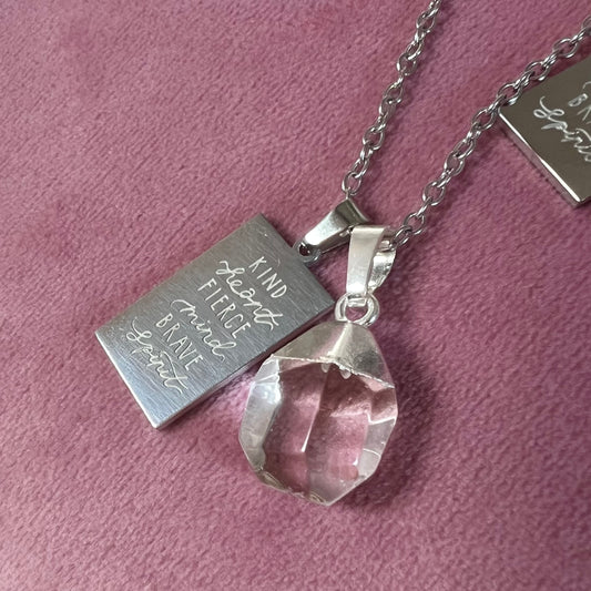 kind heart fierce mind brave spirit double-sided necklace - silver