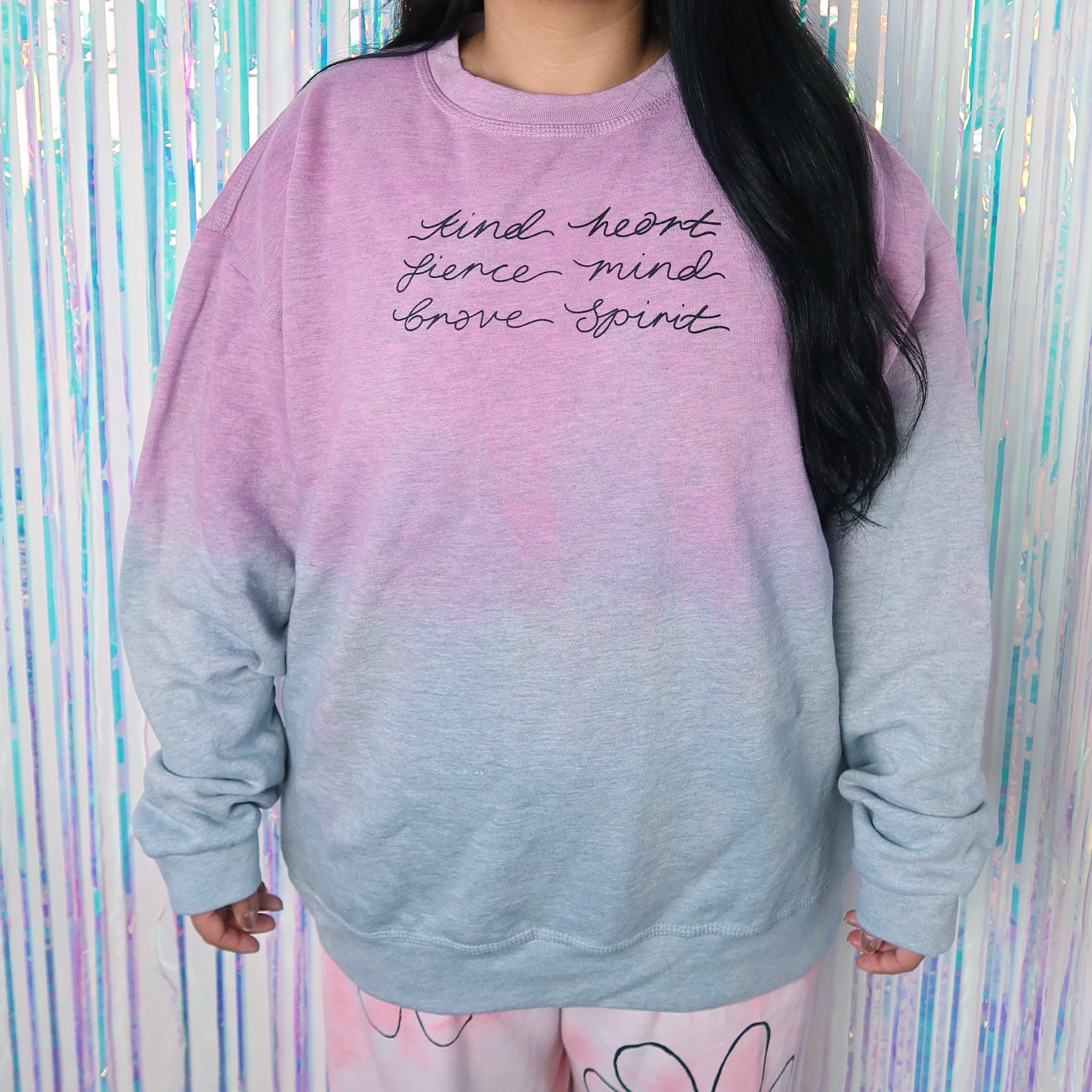 kind heart, fierce mind, brave spirit dip dye sweatshirt