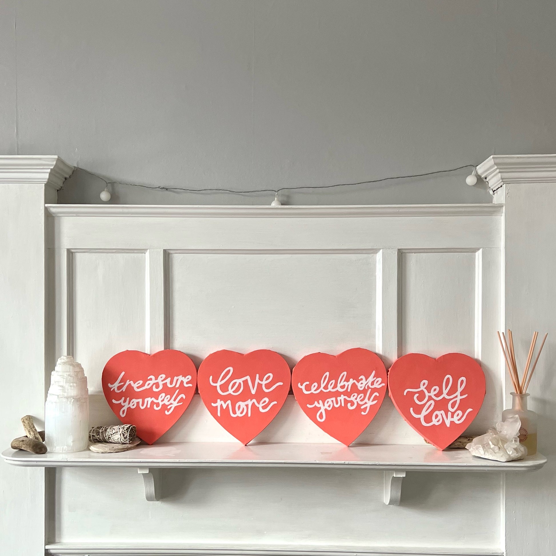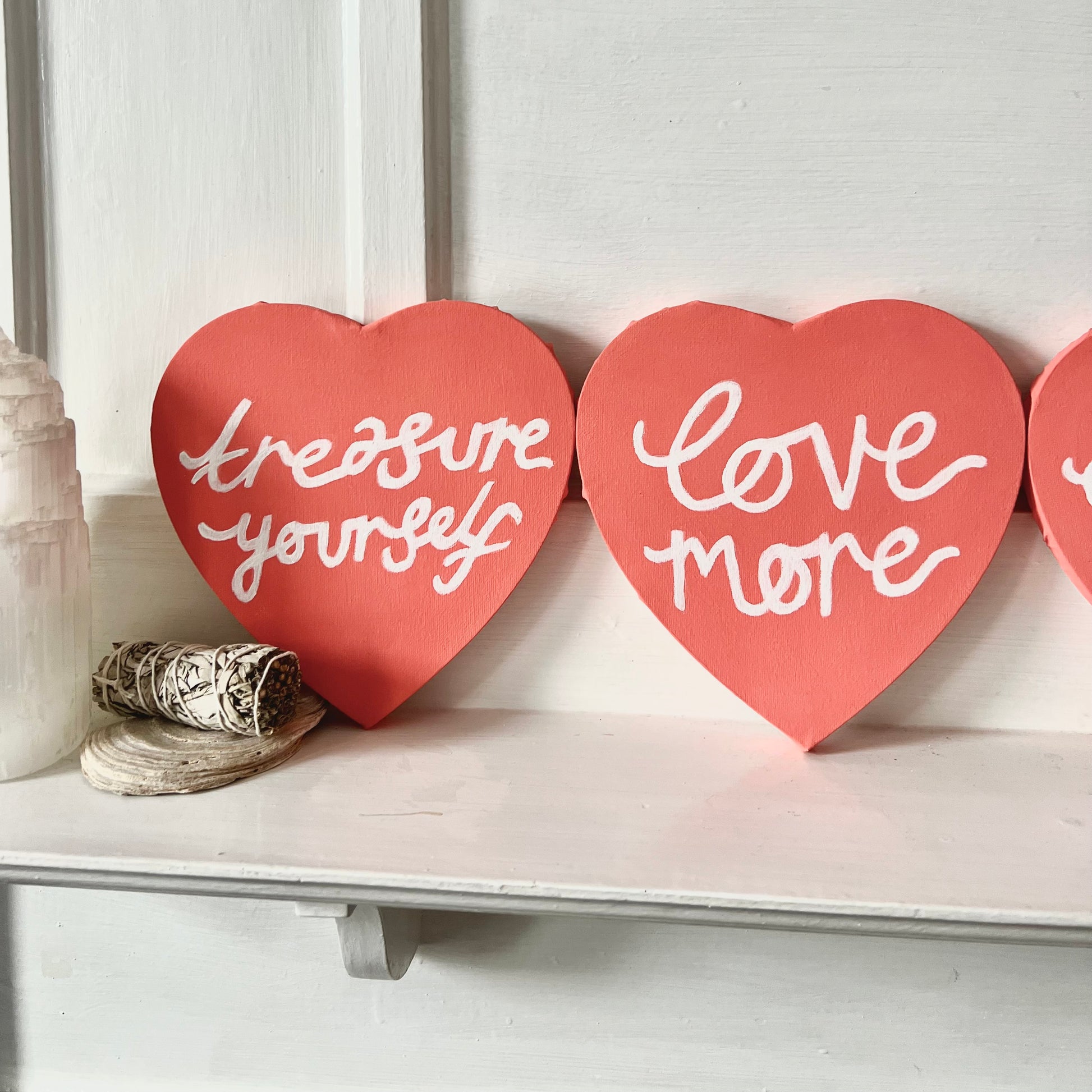 These super cute heart shaped canvases are one-of-a-kind pieces of art, there is just one of each design made. Each one is hand-painted with love.