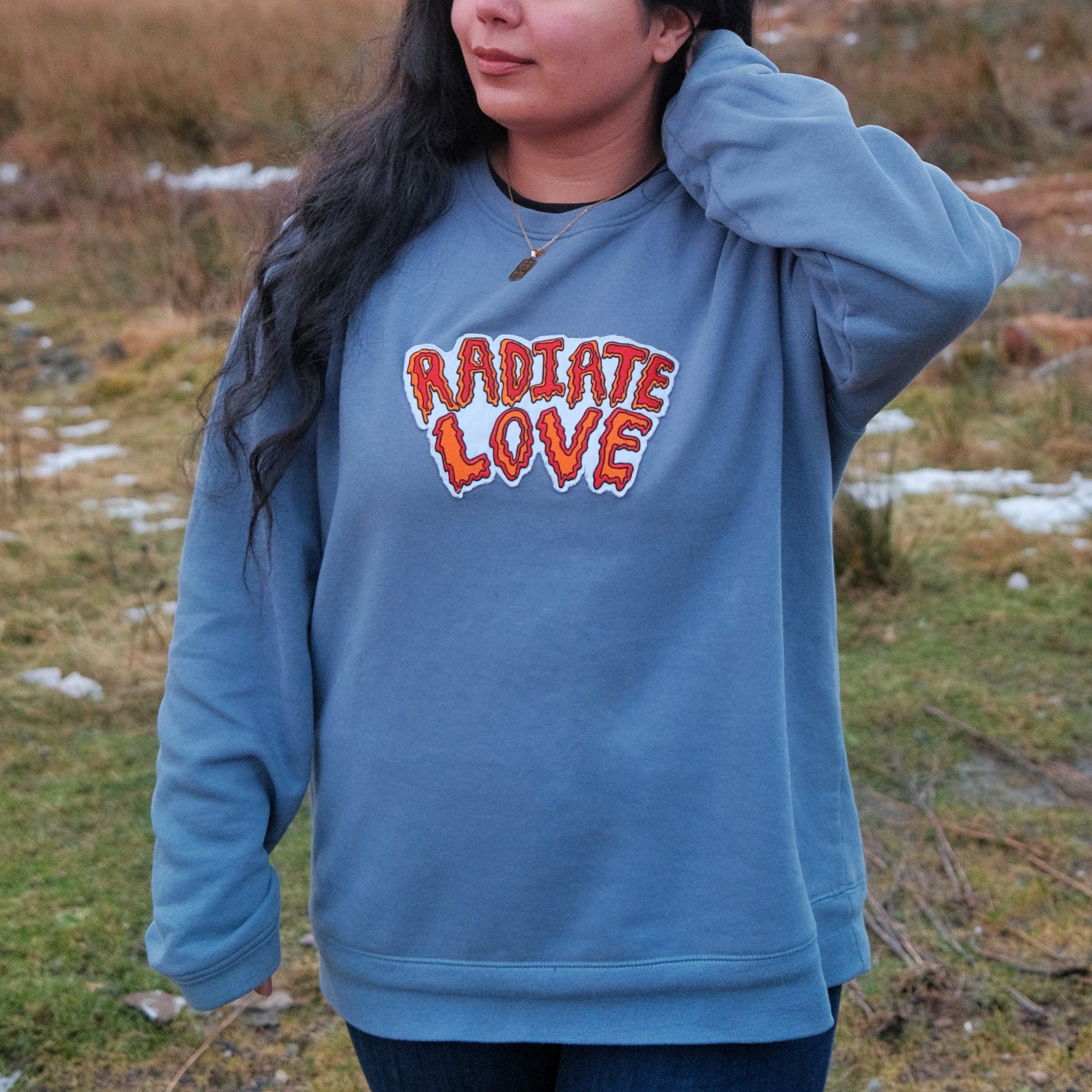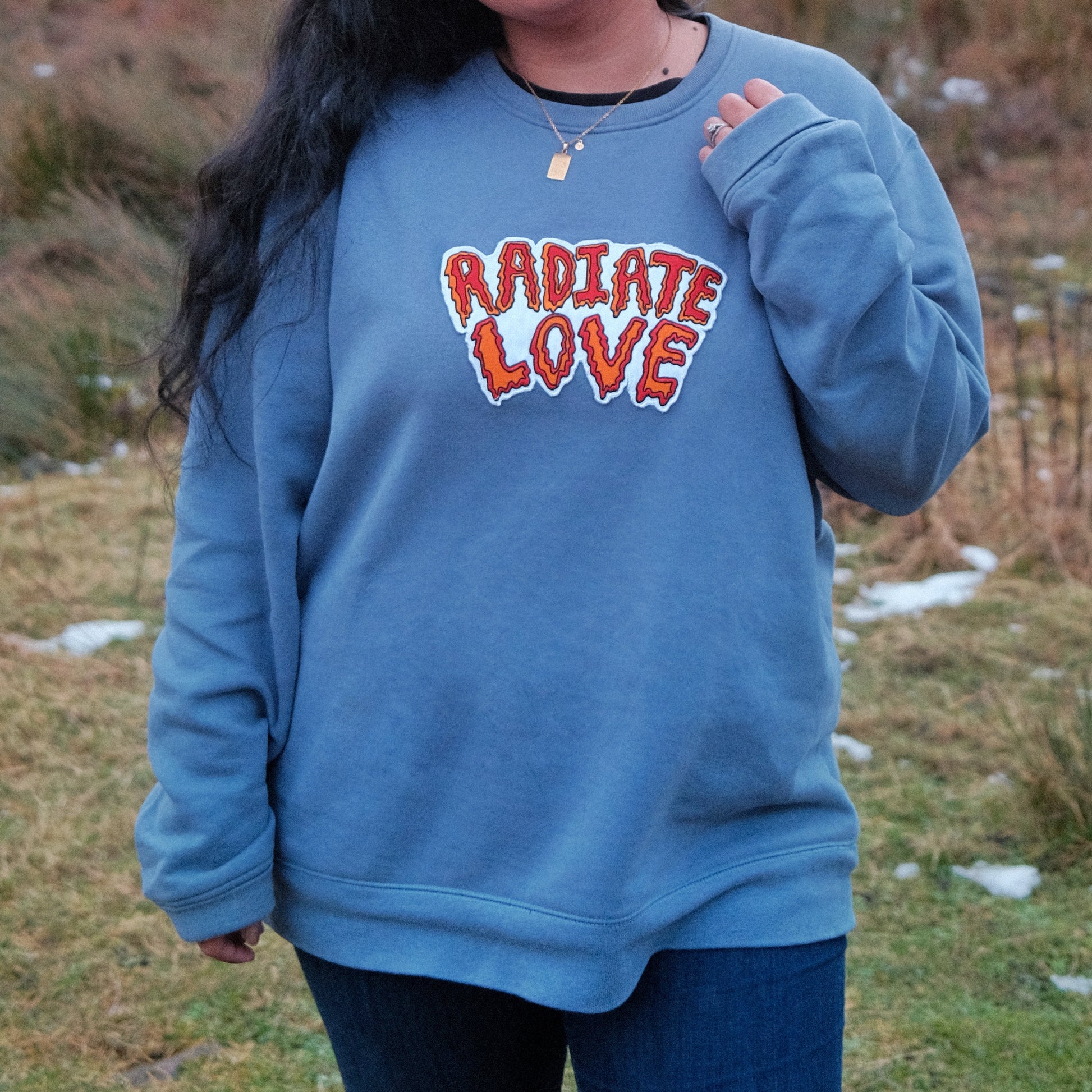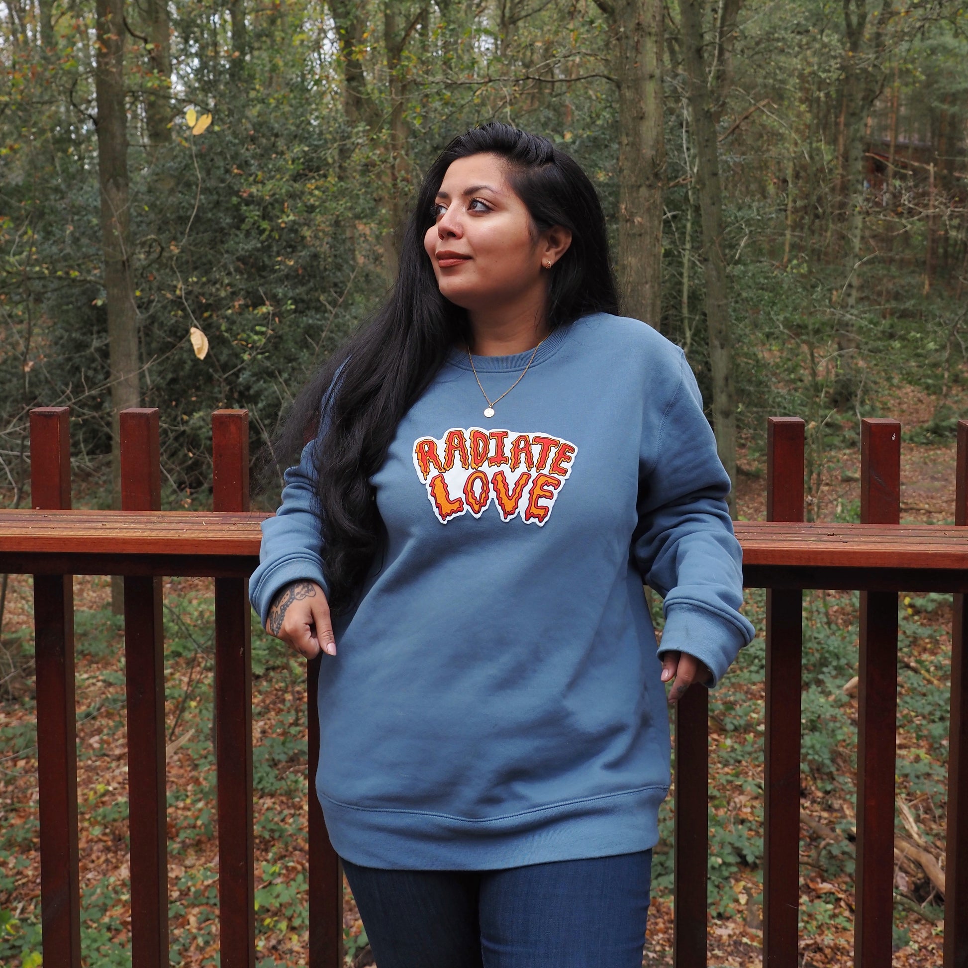 This Radiate Love sweatshirt in dusky blue is a firm favourite, and with good reason - its premium quality will soon make it a favourite in your daily wardrobe!